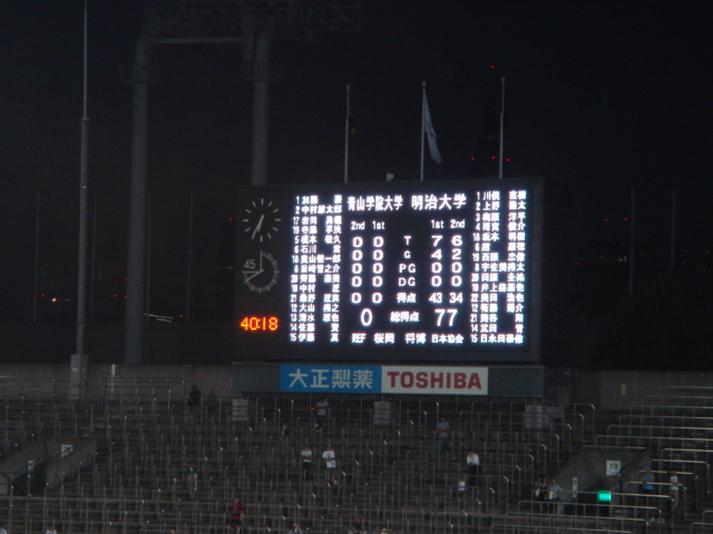 今シーズンから秩父宮には照明灯が設置され、ナイターでの試合でした。